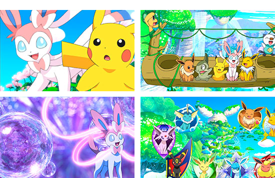 Cùng Pikachu, Mijumaru, Yanappu và Kibago tham gia một bữa tiệc với Eevui và tất cả tám hình dạng tiến hóa của nó, bao gồm cả Ninfia mới được phát hiện.